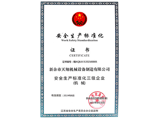 安全生產(chǎn)標(biāo)準(zhǔn)化證書